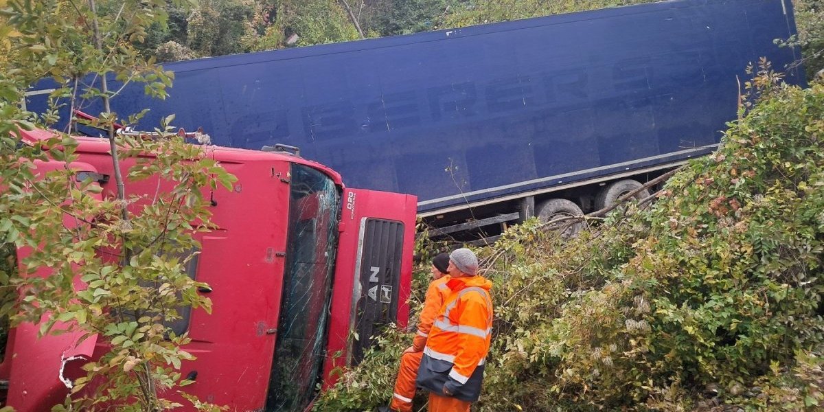 Teretnjak je završio van kolovoza u šipražju, dok je vozač ostao zarobljen.