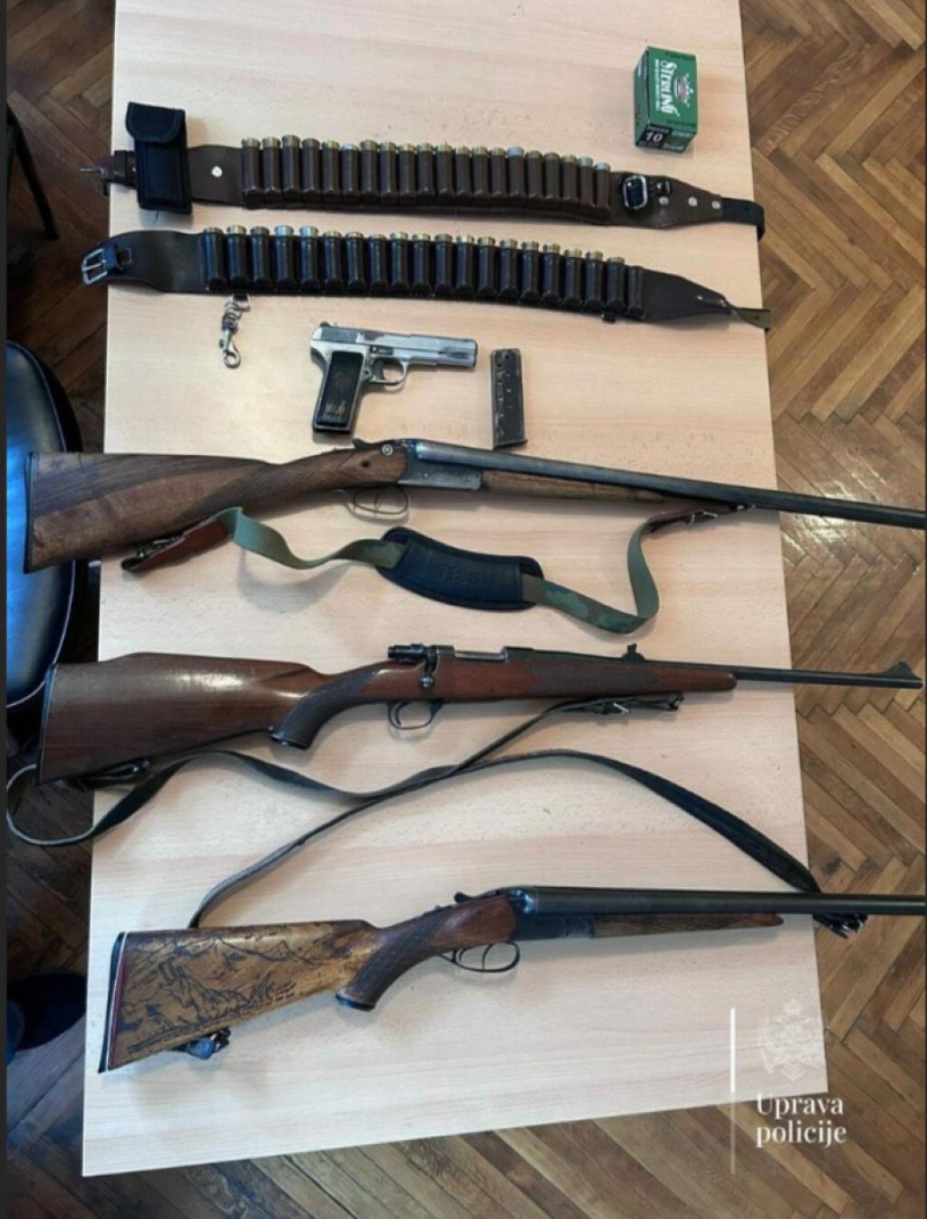 Službenici nikšićke policije, kako se dodaje, pretresli su porodične kuće i objekte koji se nalaze u mestu Grahovo kod operativno interesantnog A.L. (45), od kojeg je oduzeta vazdušna puška sa tri kutije pripadajuće municije i bajonet.