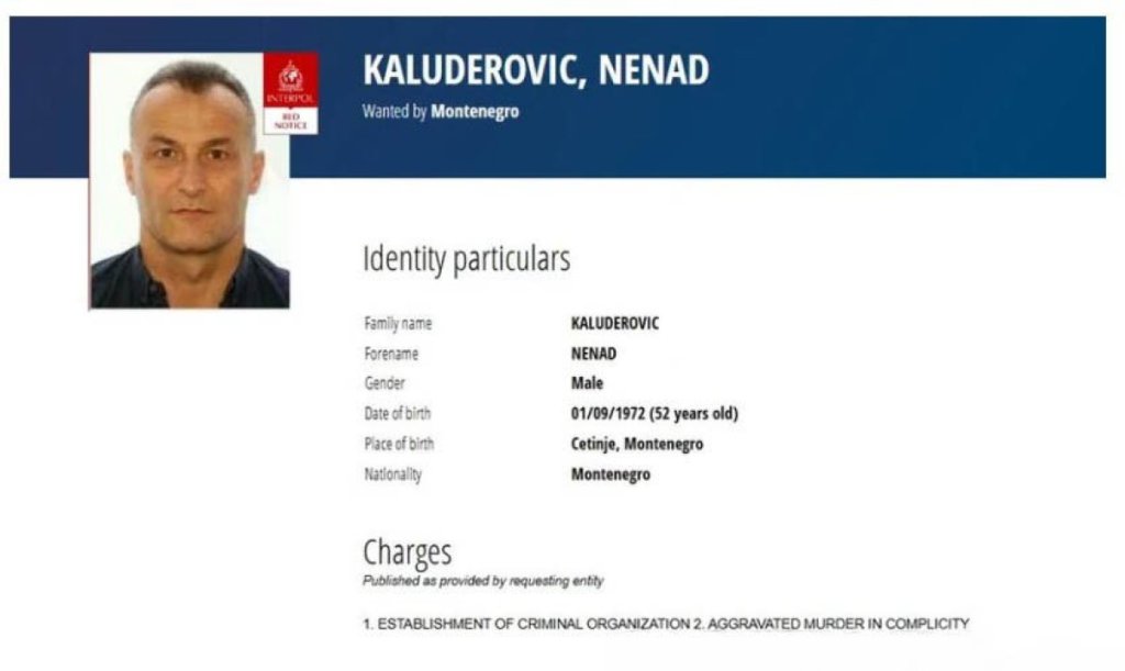 Nenad Neno Kaluđerović na Interpolovoj poternici