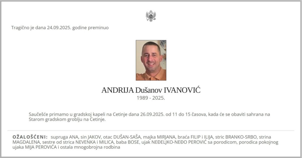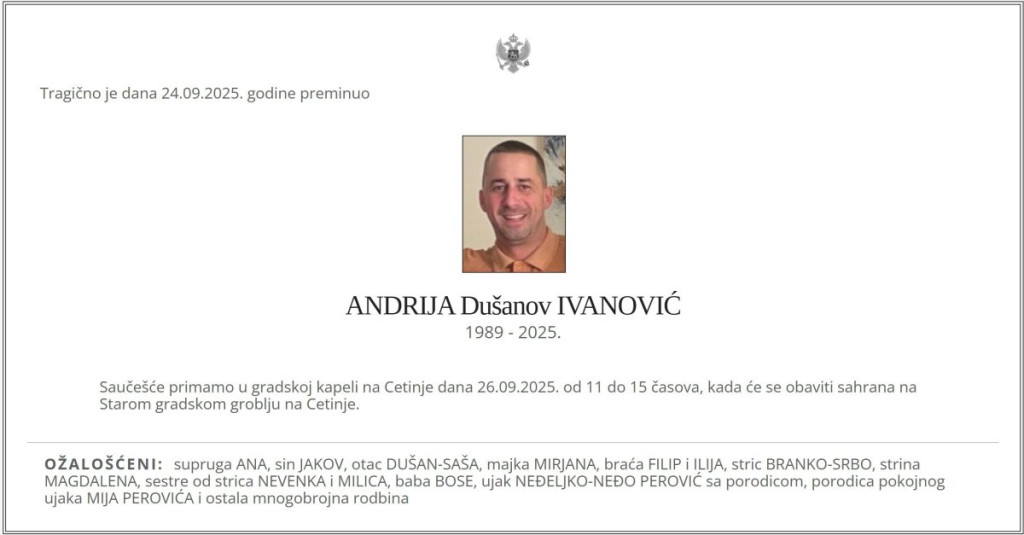 Ubijeni Filip nedavno dao čitulju bratu: Od Ivanovića sa Cetinja ostao samo Ilija (FOTO)