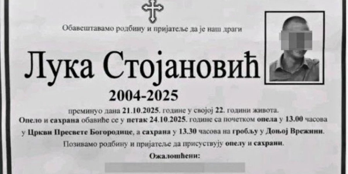 Sahrana nastradalog mladića obaviće se sutra na Vrežinskom groblju u Nišu.