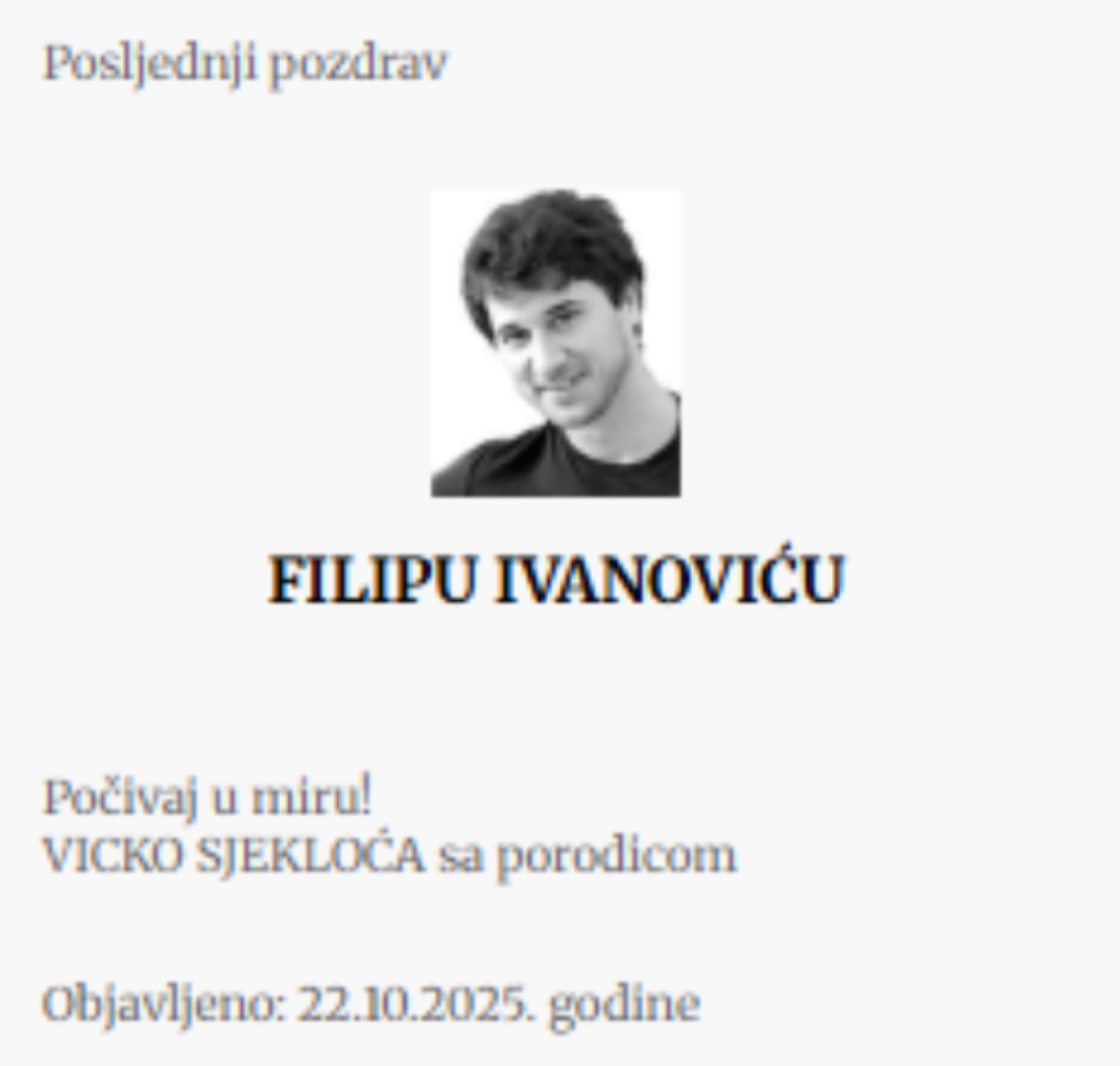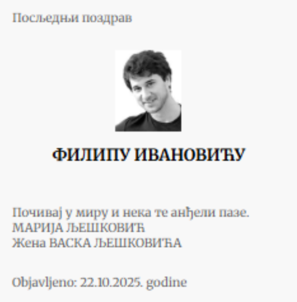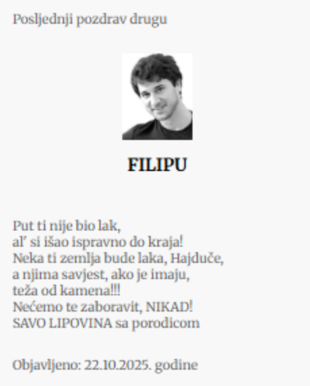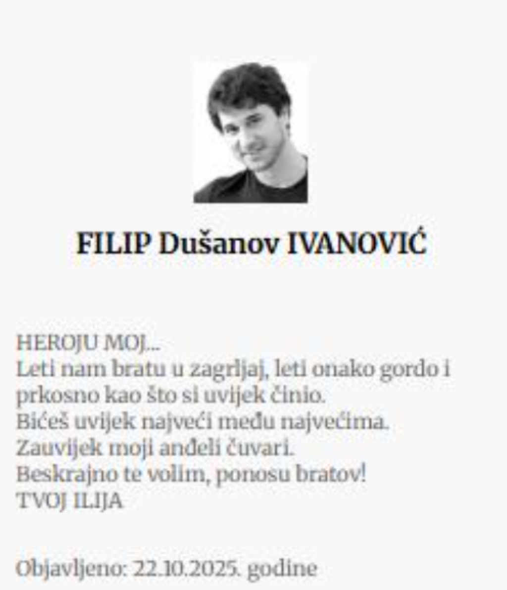 Filip Ivanović (34), pripadnik ''škaljarskog klana'', ubijen je 16. oktobra u Beogradu. Porodica i prijatelji su se kroz čitulje opraštali od njega, a jedna je privukla pažnju.