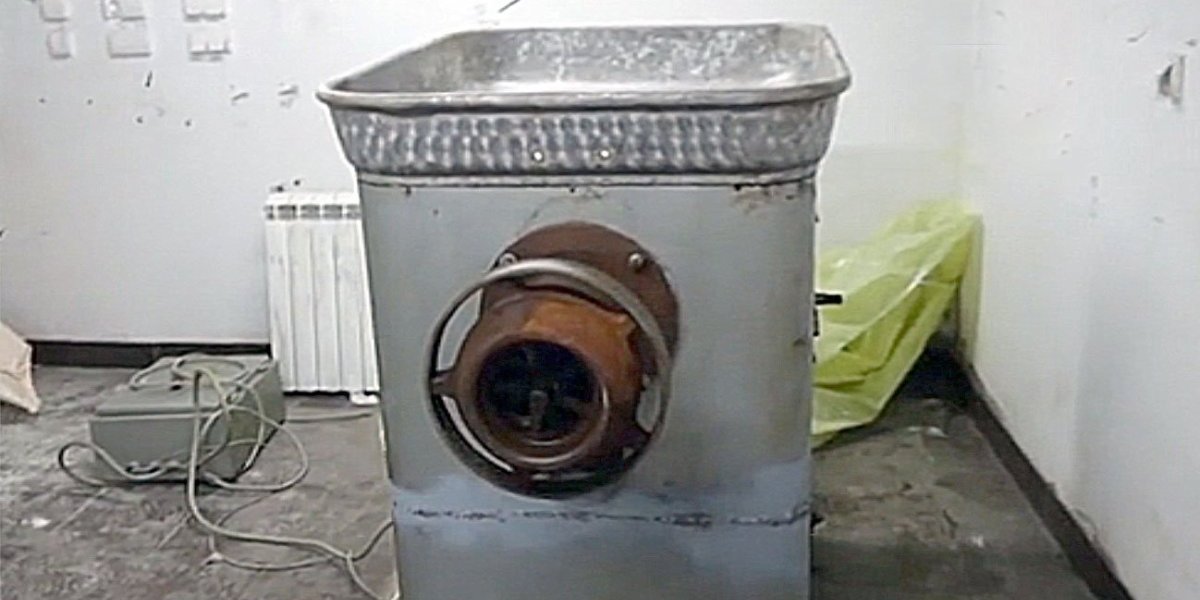 Slike industrijske mašine za mlevenje mesa, prekrivene providnim najlonom, na braon pločicama u tajnoj prostoriji u kući strave u Ritopeku, prikazane su danas u Specijalnom sudu u Beogradu, na suđenju pripadnicima kriminalne grupe Veljka Belivuka i Marka Miljkovića koja se tereti za sedam ubistava, trgovinu drogom i oružjem.