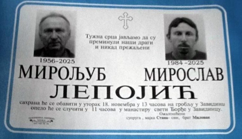 - Monahinje su predložile da tela iz kapele u Nišu budu dopremljena u manastir Svetog Đorđa u Zavidincu, jer je cela porodica Lepojić uništena. Miroljubova supruga Stana koja je i sama povređena u ovom napadu, tek juče je izašla iz bolnice a njihov drugi sin Milovan i dalje je na lečenju. Čitav kraj je pogođen nezapamćenom tragedijom, pa su monahinje u nameri da ublaže gubitak Lepojića odlučila da im izađu u susret. Opelo će biti u manastiru, a i njihova trpezarija je stavljena na raspolaganje rodbini kako bi se postavilo posluženje - priča Jasmina.