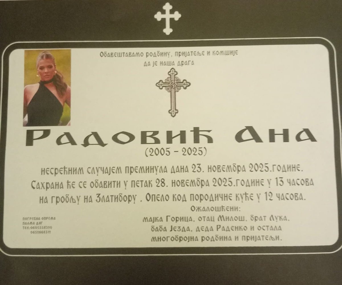Podsetimo, Ana Radović nestala je u nedelju kada je sa prijateljem Aleksandrom Masalušićem krenula u Beograd na fakultet, a njihova tela su nađena tri dana kasnije u automobilu koji je sleteo u betonski ispust u Međuvršju.