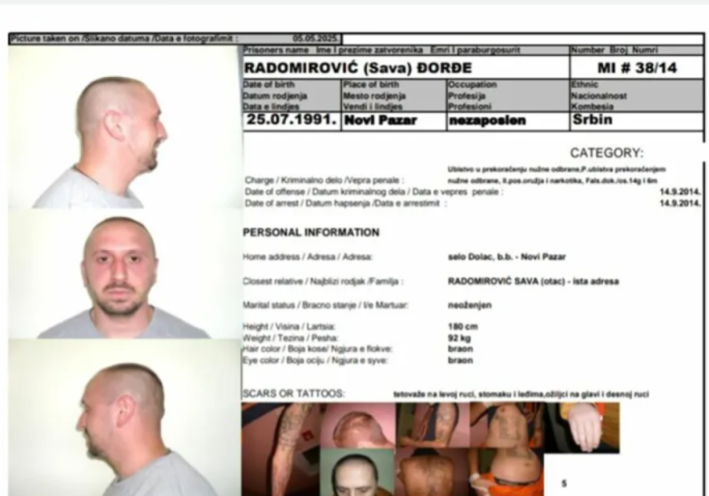 Đorđe Radomirović, osuđeni ubica, juče oko 15.45 časova je pobegao iz zatvorskog centra u Severnoj Mitrovici, a odmah nakon prijave incidenta, policija je pokrenula opsežnu potragu.