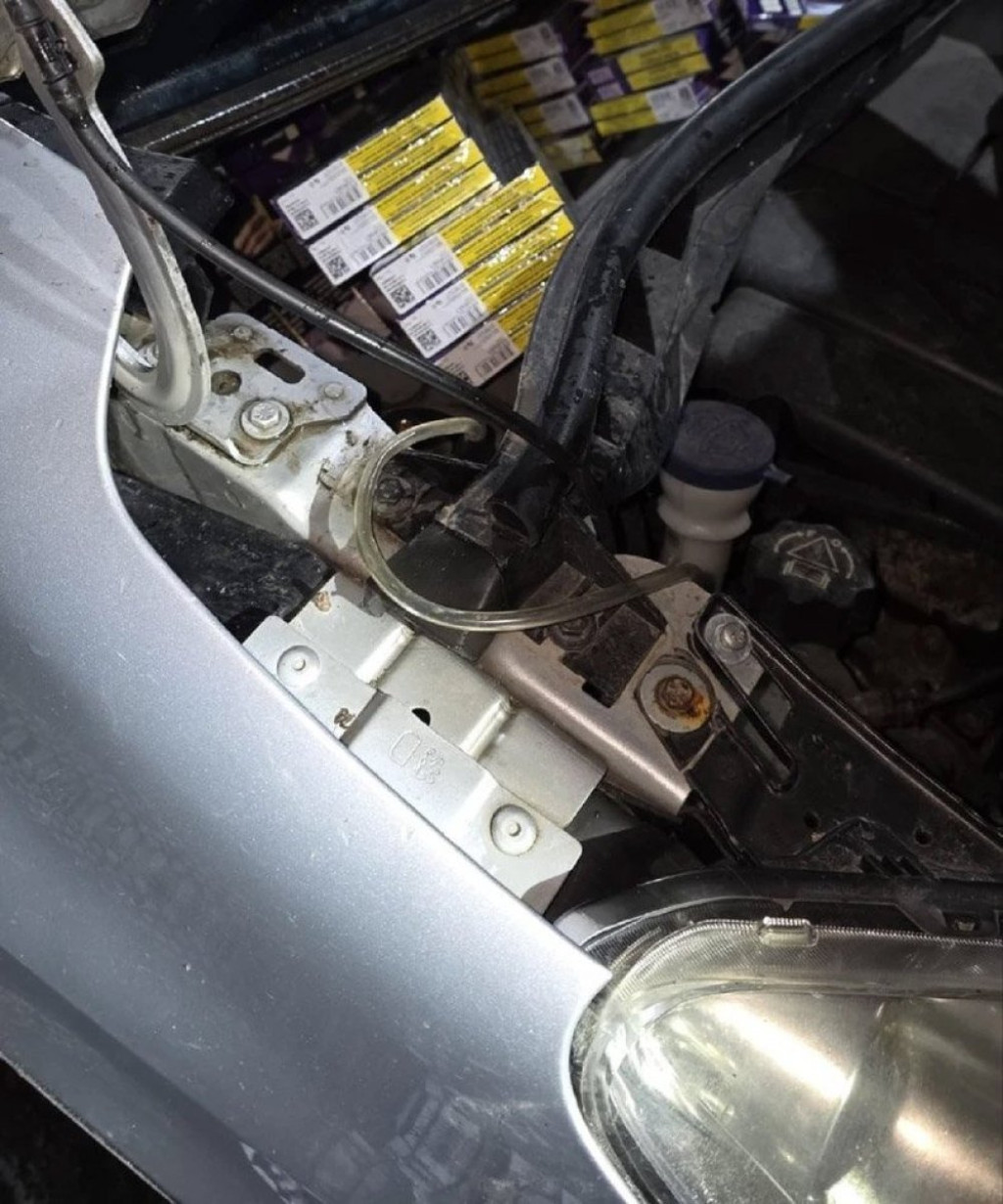 Daljim pregledom ustanovljeno da se cigarete kriju i u prednjem braniku, blatobranima, ventilaciji i u prostoru oko motora brisača.