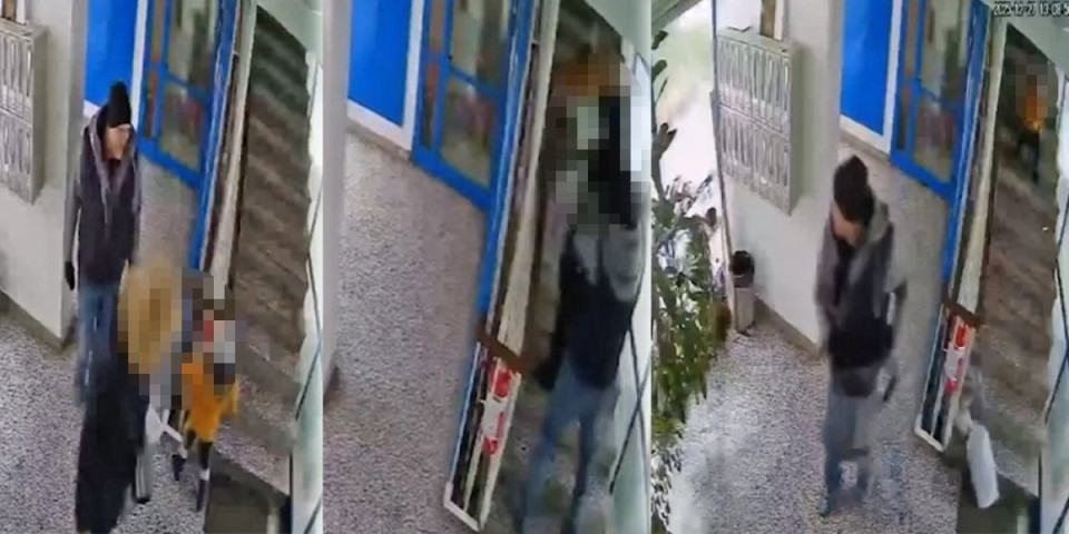 Na snimku se vidi kako se žena sa detetom kreće hodnikom i prilazi stepeništu, a kada je s mališanom krenula da se penje, muškarac je napada s leđa. On je tada izvukao nož i počeo da je ubada, a svemu tome prisustvovao je i dečak koji je od straha ostao da sedi na stepenicama pored bake.