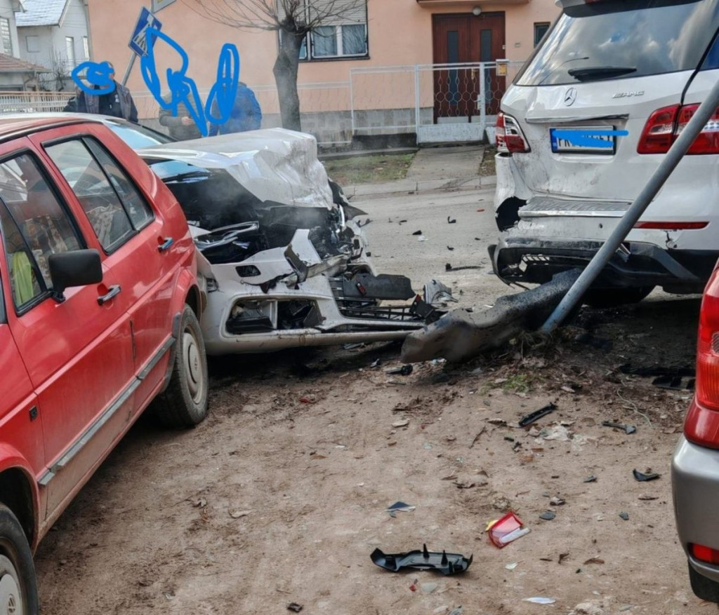 - Beli "audi" je verovatno direktno udario teget "citroena", zatim je beli "audi" oštetio taj parkirani beli džip "mercedes", i onda lančano možda još dva ispred parkirana, pored ivičnjaka. Sva povređena lica su mlađi muškarci - rekli su nam svedoci.