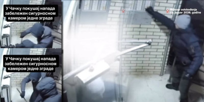 Na video-zapisu, na kom se navodi da je snimljen u čačanskom Bulevaru oslobođenja 13. januara, vidi se mladić koji u vidno paničnom stanju prilazi ulazu zgrade i ubrzano pritiska interfon, pokušavajući da uđe unutra.
