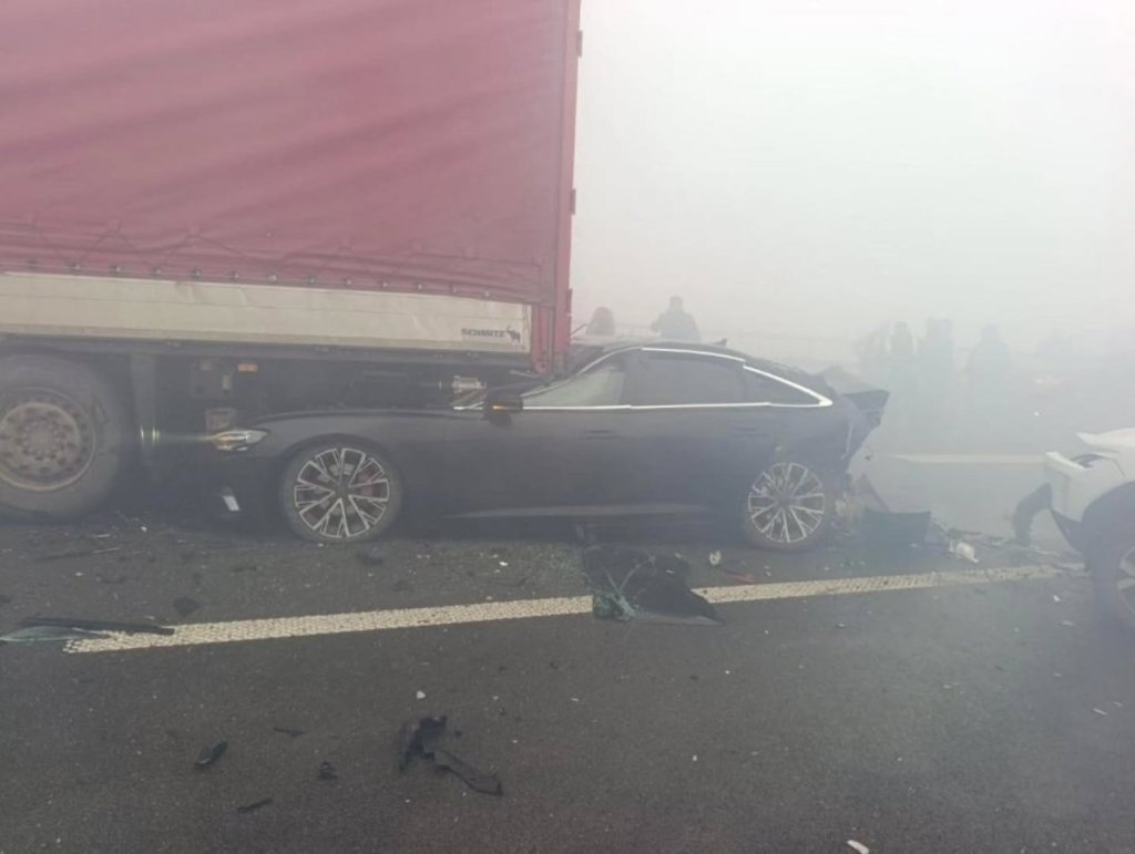 Devet automobila i kamion učestvovali su jutros u teškoj saobraćajnoj nezgodi na auto-putu Miloš Veliki, u blizini Lučana, u smeru ka Požegi kod tunela Munjino brdo.