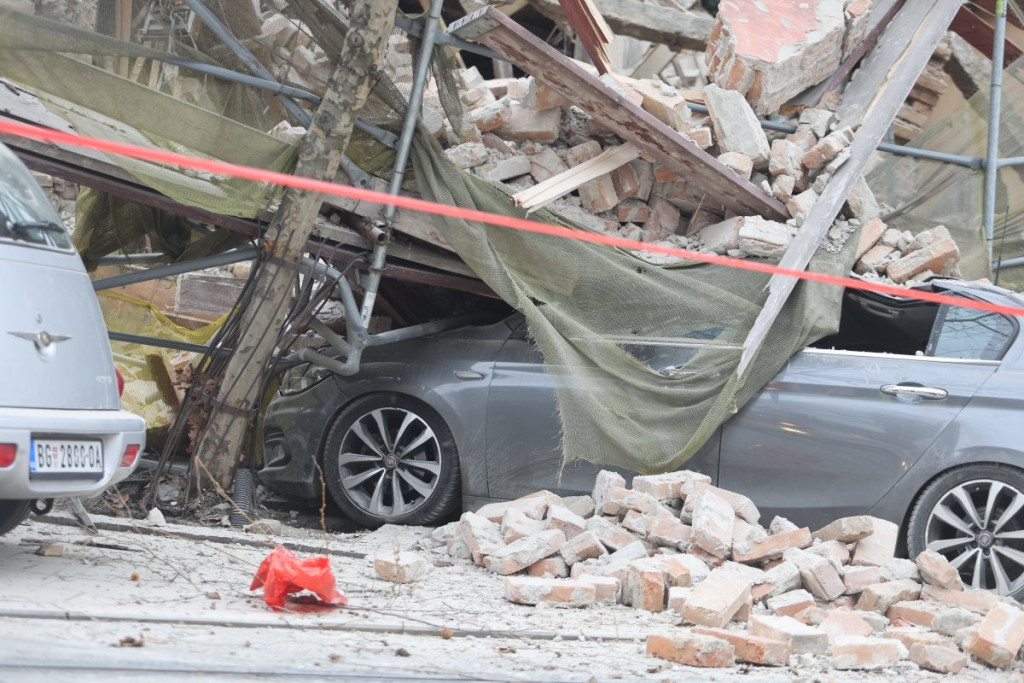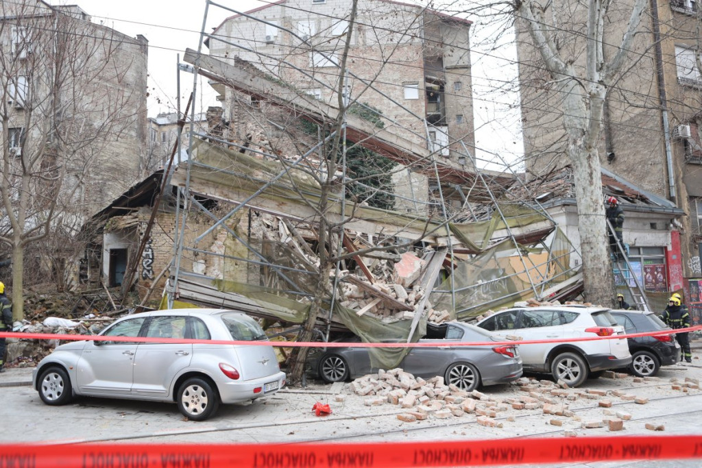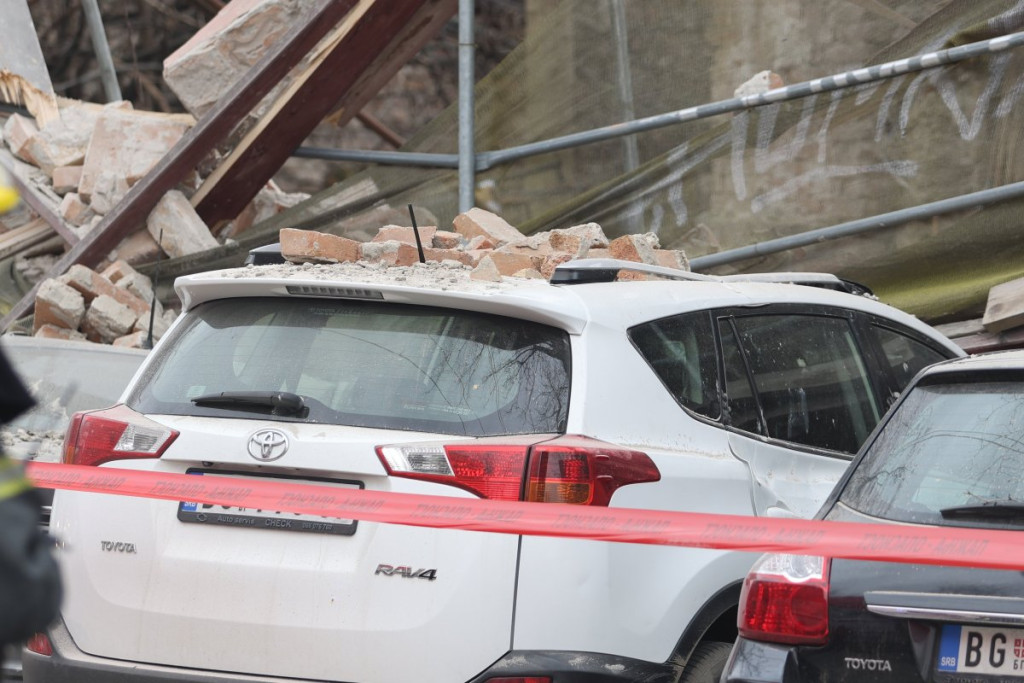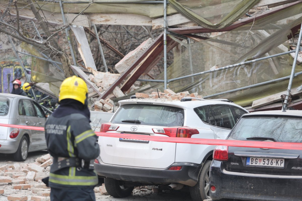 U centru Beograda došlo je do urušavanja dela starog objekta u Ulici Džordža Vašingtona, a prvi snimci pokazuju da su automobili koji su se nalazili tu potpuno uništeni.