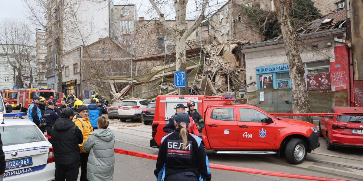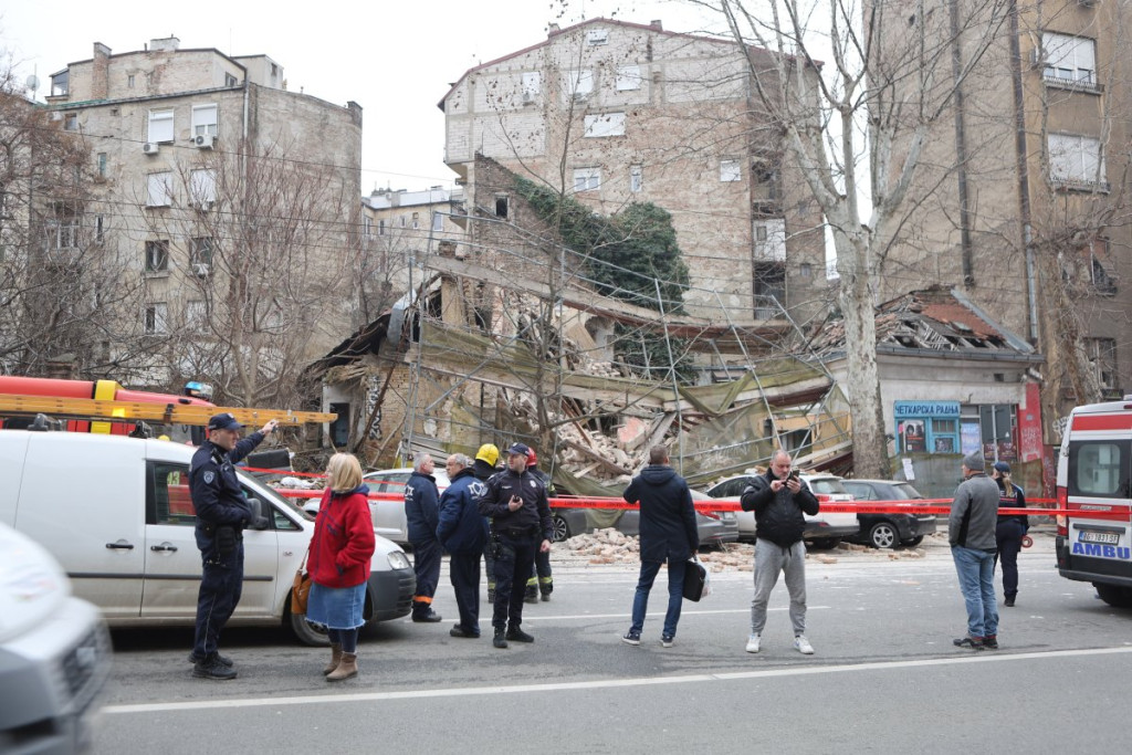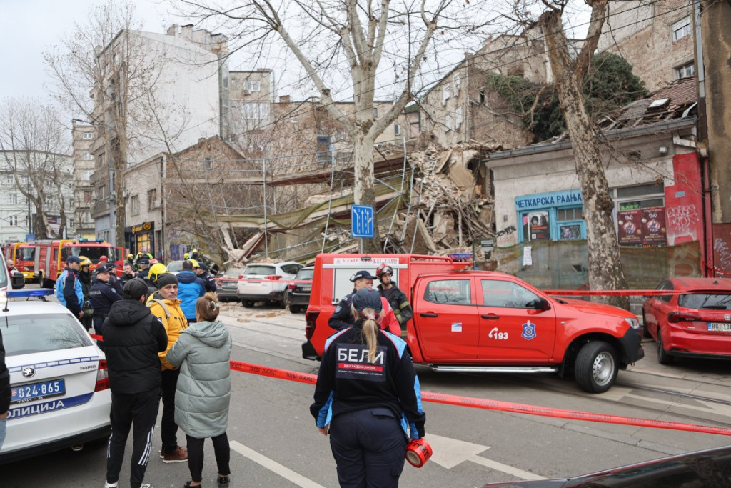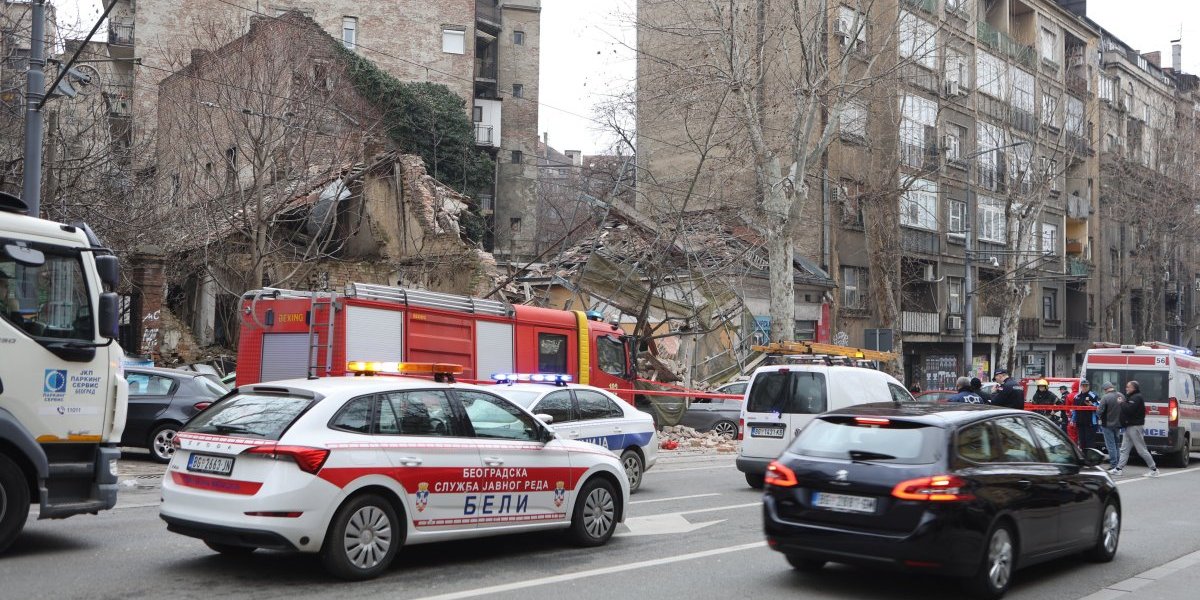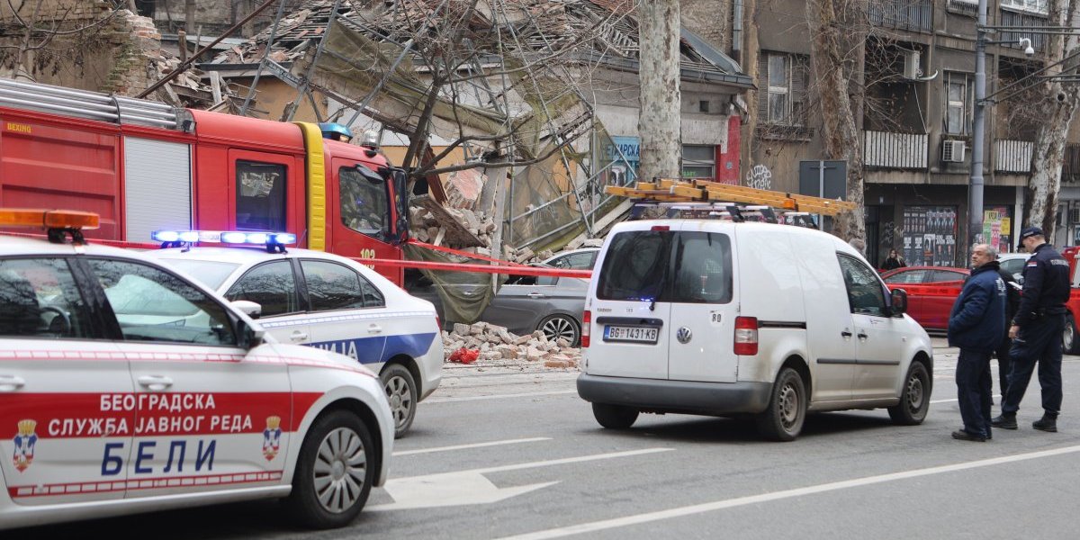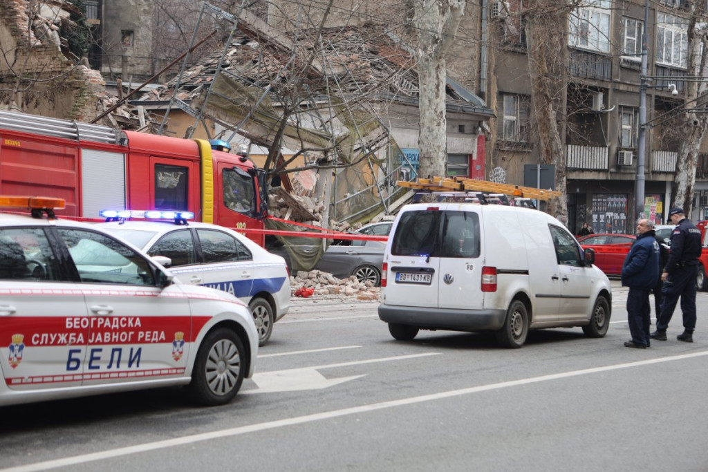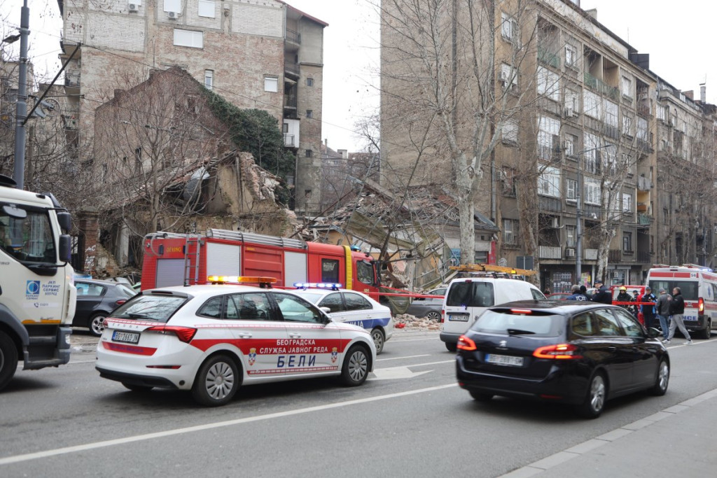 Nekoliko policijskih patrola, vozila Hitne pomoći, kao i vatrogasnih vozila nalazi se u Ulici Džordža Vašingtona, gde je došlo urušavanja stare zgrade.