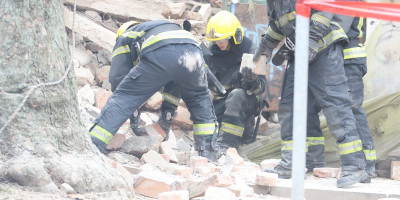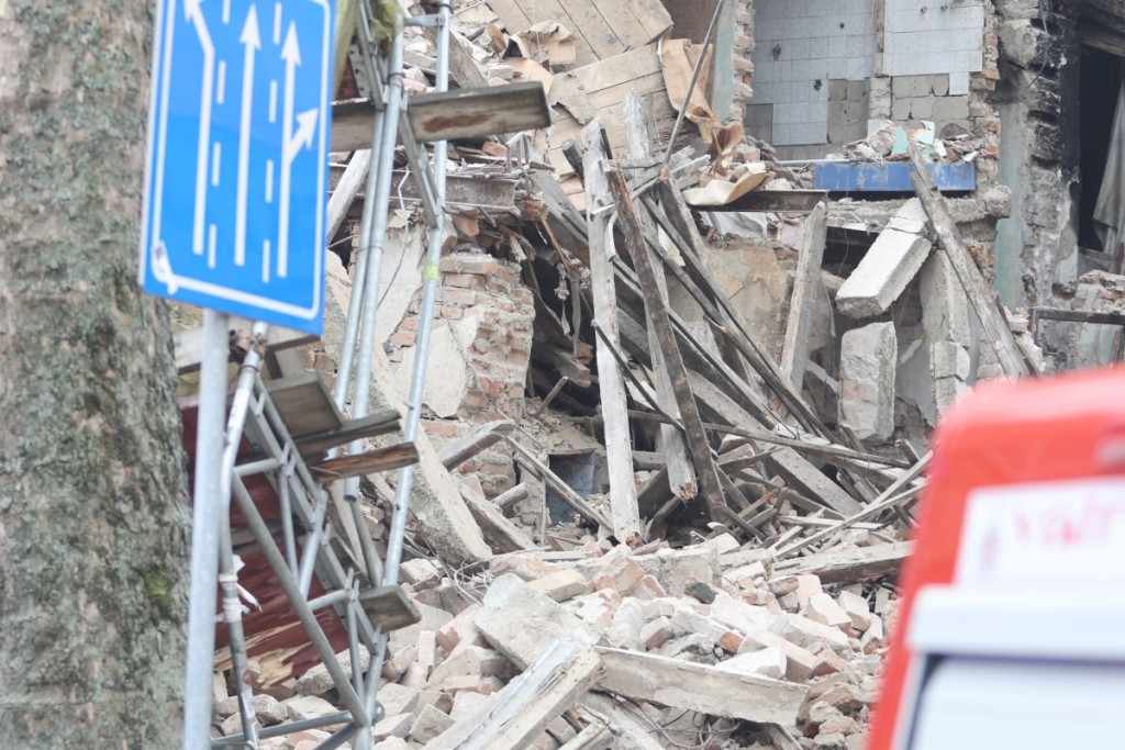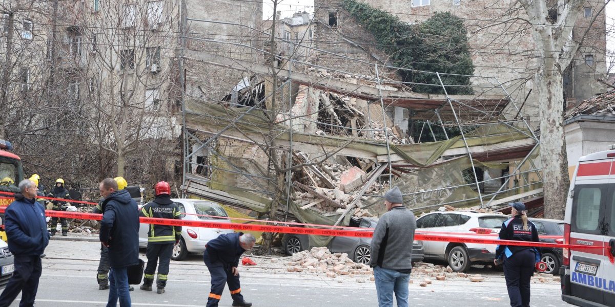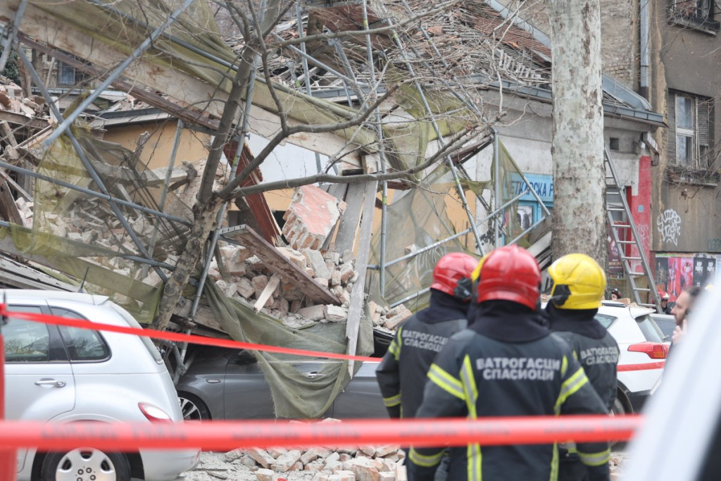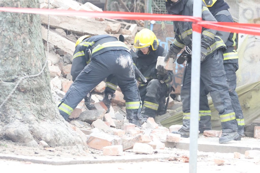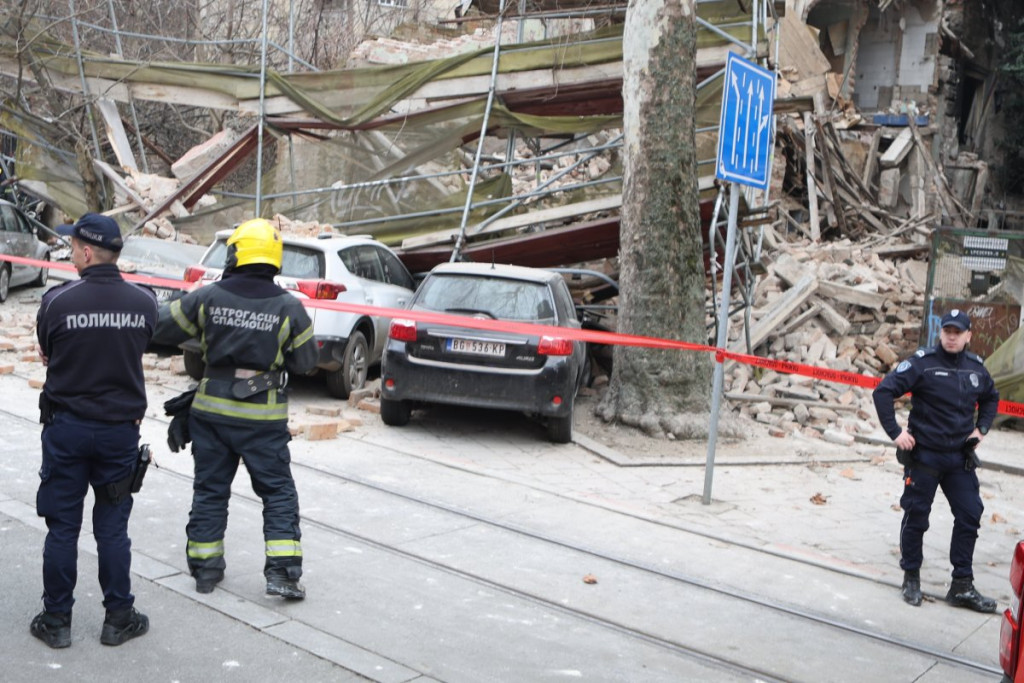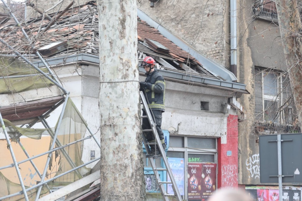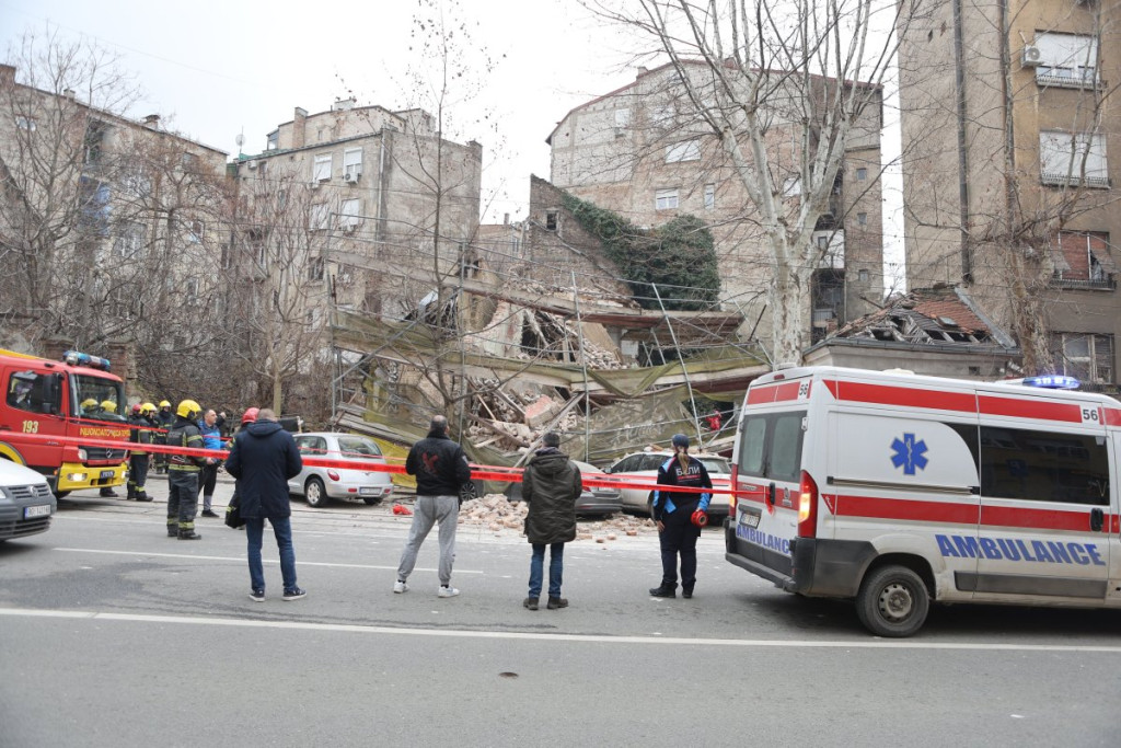 Nekoliko policijskih patrola, vozila Hitne pomoći, kao i vatrogasnih vozila nalazi se u Ulici Džordža Vašingtona, gde je došlo urušavanja stare zgrade.
