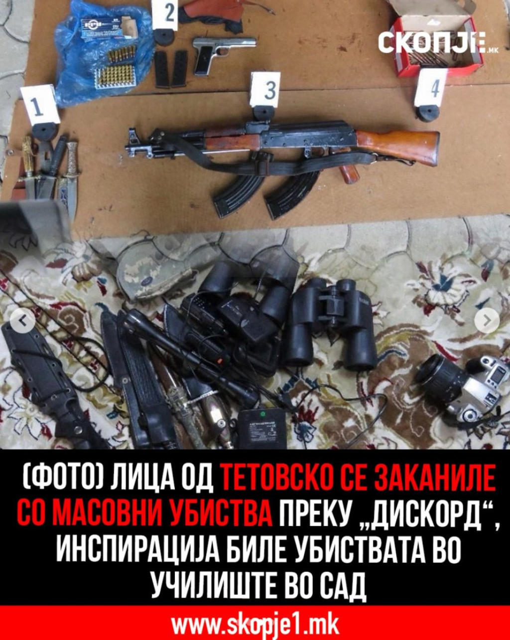Najozbiljniji slučaj zabeležen je u okolini Skoplja, gde je policija, postupajući po informacijama dobijenim od FBI, u više objekata pronašla automatsku pušku AK-47, više pištolja, pancire, noževe i veliku količinu municije. U akciji su uhapšene dve osobe, među kojima i muškarac star 89 godina. Istraga je ukazala na sumnju da je oružje moglo biti korišćeno za ozbiljna krivična dela.