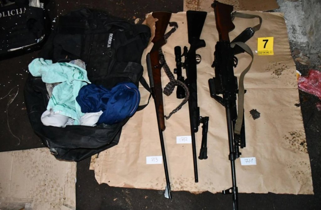 Među oružjem pronađeno je pet automatskih pušaka, malokalibarsku pušku, više okvira i municije za puške, čije držanje nije dozvoljeno građanima, kao i pištolj, poluautomatsku pušku, više okvira i municije, za čije držanje nije imao odobrenje nadležnog organa.