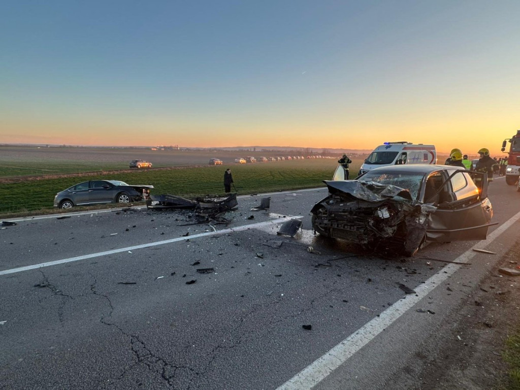 Delovi vozila su svuda po putu, automobili su uništeni, a jedan je od siline udara sleteo s puta, te je prava sreća da nema nastradalih.