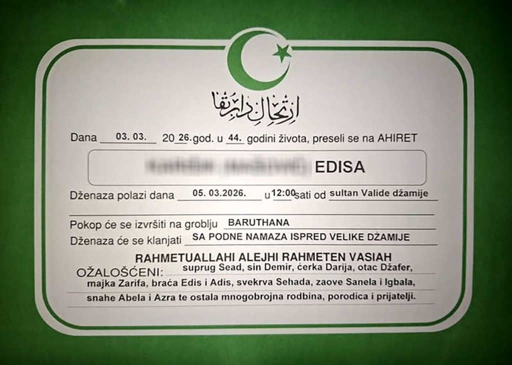 Građani Sjenice tuguju i opraštaju se od policajke Edise Karišik i njene maloletne ćerke koje su poginule u saobraćajnoj nesreći, dok je njen sin teško povređen.