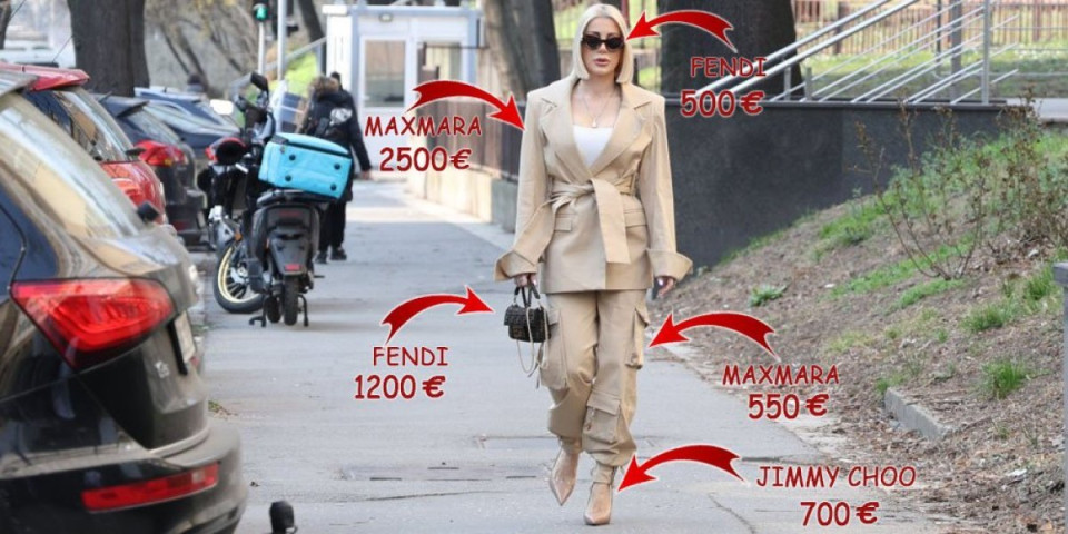 Najskuplji komad bio je mantil brenda Max Mara, čija se cena procenjuje na oko 2.500 evra, dok je Fendi torba vredna oko 1.200 evra. Uz to je nosila Max Mara pantalone od oko 550 evra, Jimmy Choo cipele vredne oko 700 evra, kao i Fendi naočare čija je cena oko 500 evra.