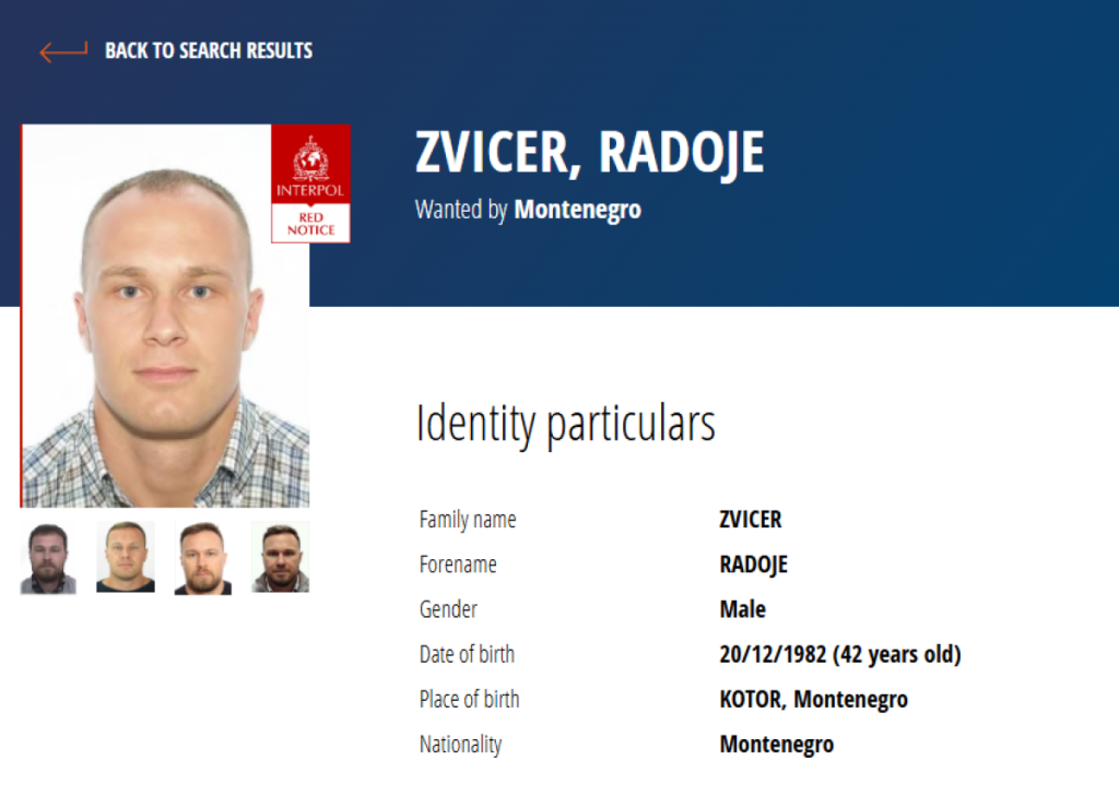 Radoje Zvicer na Interpolovoj crvenoj poternici