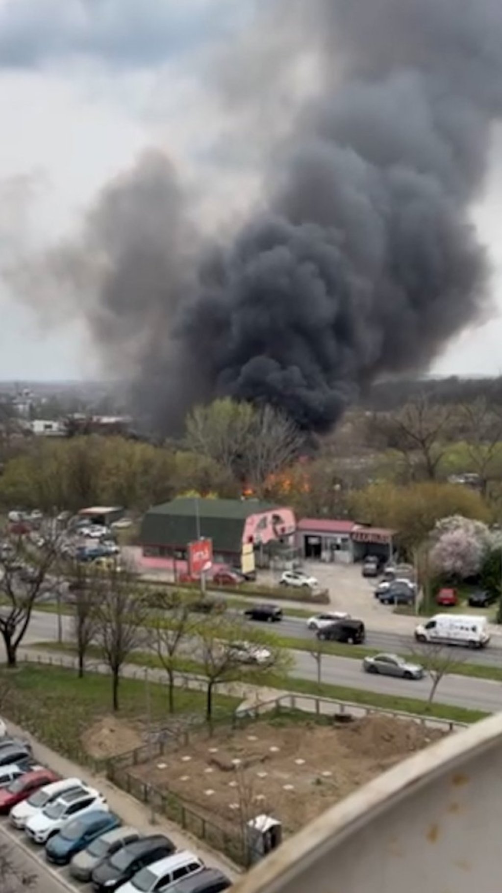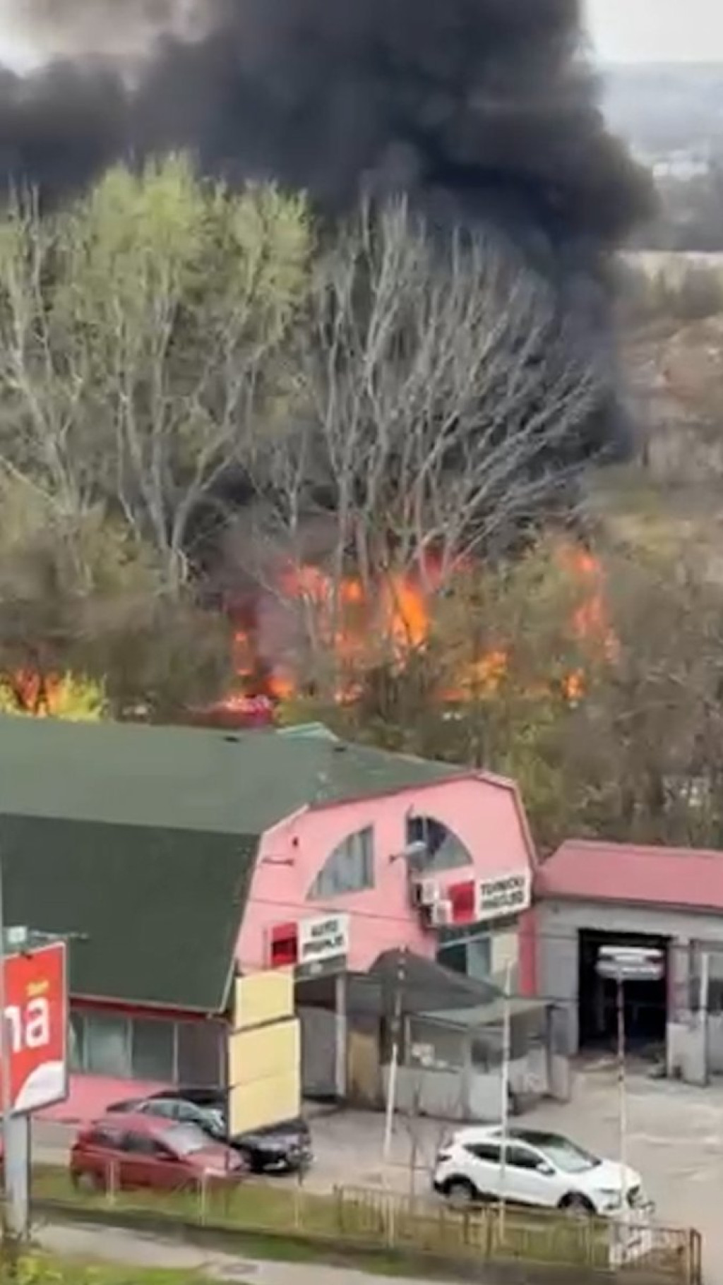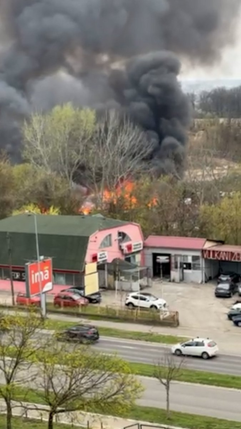 Kao što se može videti na snimcima, vatra se širi velikom brzinom i preti da "proguta" ovaj objekat i parkirane automobile, koji se nalaze pored njega.