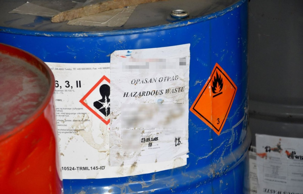 - Policijski službenici su, na skladištu preduzeća koje je registrovano za preradu neopasnog otpada, čiji je M.V. direktor, a P.R. zaposleni, pronašli 115 tona opasnog otpada kancerogenosti kategorije 1A, kao i 62 kontaminirana suda ukupne zapremine 12.400 litara sa tragovima opasnih materija – saopšteno je iz policije.