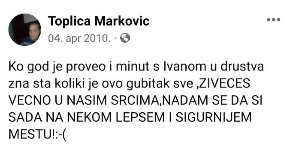 - Svi su bili van sebe kada su shvati da je on presudio devojkama. Niko nije sumnjao u njega, a najmanje porodice. Kada se saznalo da su devojke ubijene Toplica Marković se na svom Fejsbuk profilu oprostio od svoje bivše devojke.