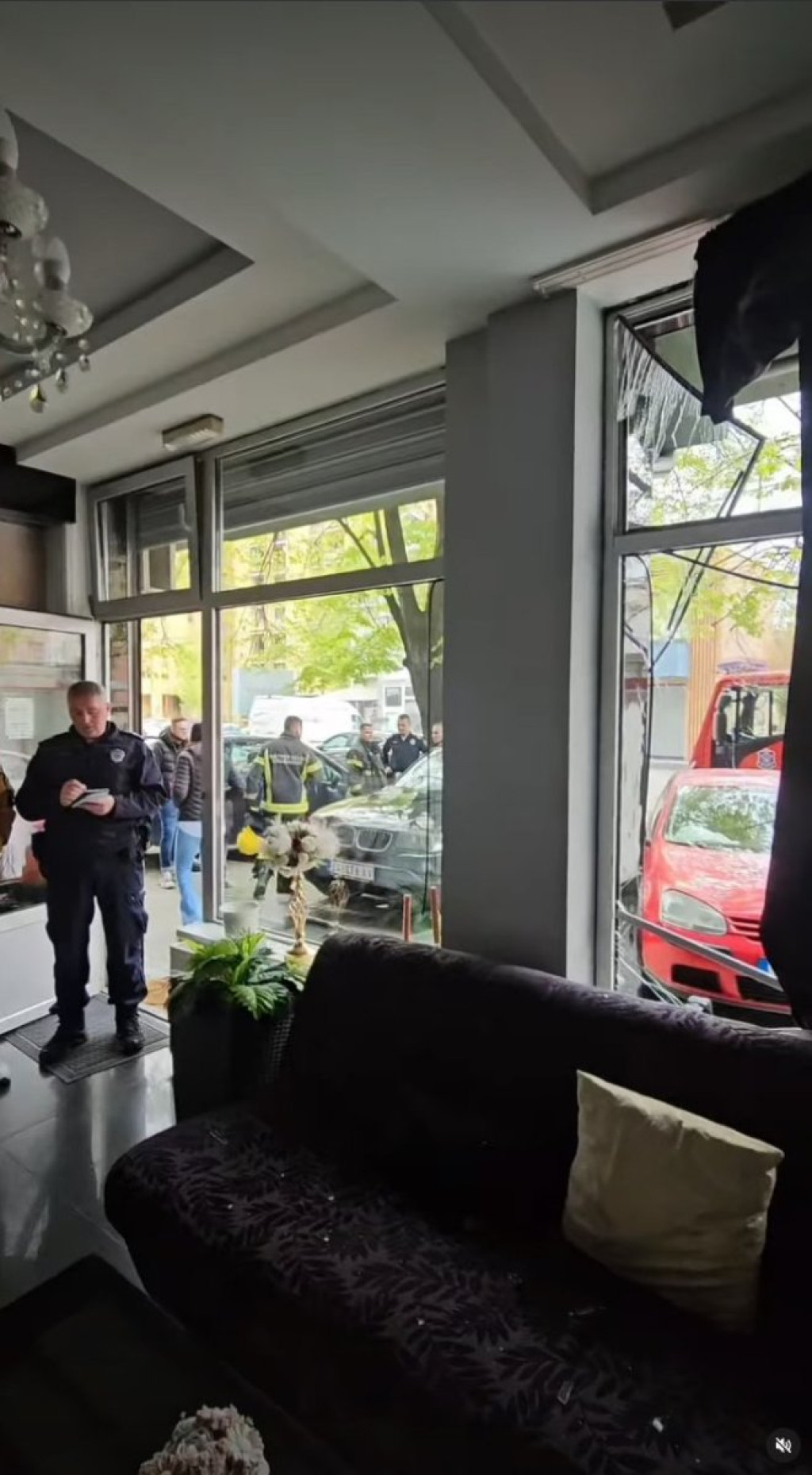 Na objavljenom snimku se može videti da su skoro sva stakla u objektu popucala, oštećeni su zidovi i nameštaj, a vidi se i srča od razbijenih ogledala.