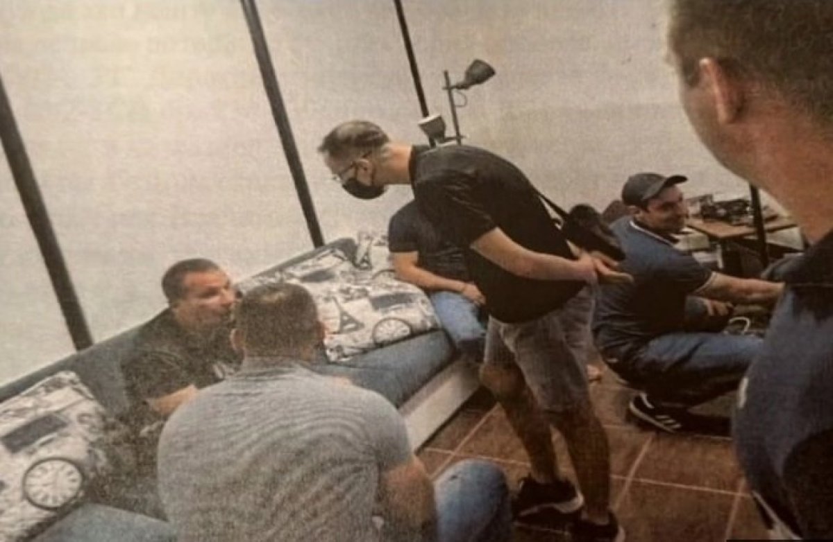 U sudu je potom puštena i još jedna fotografija na kojoj Nikola Mitić sedi u kancelariji stadiona, okružen okrivljenima, a na kojoj se vidi kako okrivljeni saradnik Bojan Hrvatin stoji nagnut nad Mitićem.