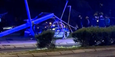 Teška nesreća u Nišu: Automobil sleteo s puta i udario u banderu (VIDEO)