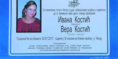 Nesrećna žena je zbog problema sa jetrom u sedmom mesecu trudnoće iz Niša prebačena u GAK Višegradska u Beogradu, gde se 26. juna porodila carskim rezom. Međutim, Ivanino stanje se pogoršalo posle porođaja, pa je prebačena u Urgentni centar, gde je preminula 2. jula. Njena prevremeno rođena beba, koju je majka nazvala Vera, umrla je samo dva dana posle rođenja.