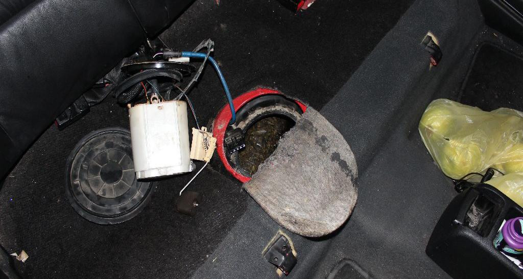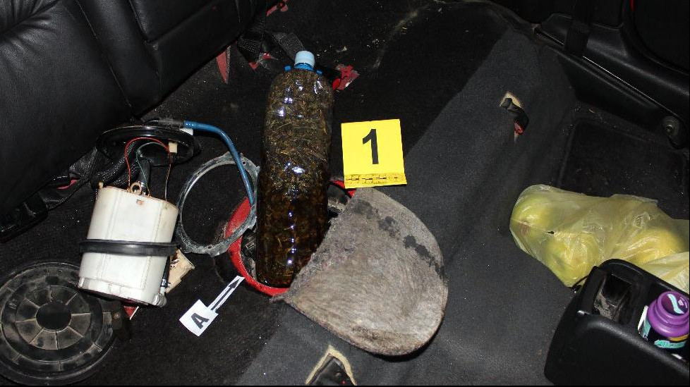 Prilikom pregleda rezervoara vozila „opel astra“, makedonskih registarskih oznaka, policija je pronašla deset plastičnih flaša napunjenih sa ukupno devet kilograma i 377 grama marihuane.