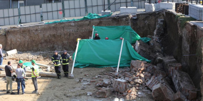 Dojavu o obrušavanju zida MUP je primio jutros nešto posle 8.30 sati.