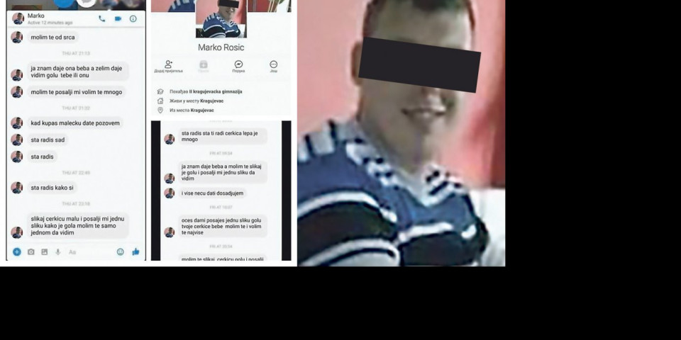 Pedofil koji se na Fejsbuku predstavlja kao Marko Rosić poslao je na desetine poruka jednoj ženi, tražeći joj da mu pošalje gole slike njene bebe! Jezivu prepisku objavio je Igor Jurić preko svoje fondacije "Tijana Jurić", kako bi javnost upozorio na ovog opasnog manijaka!