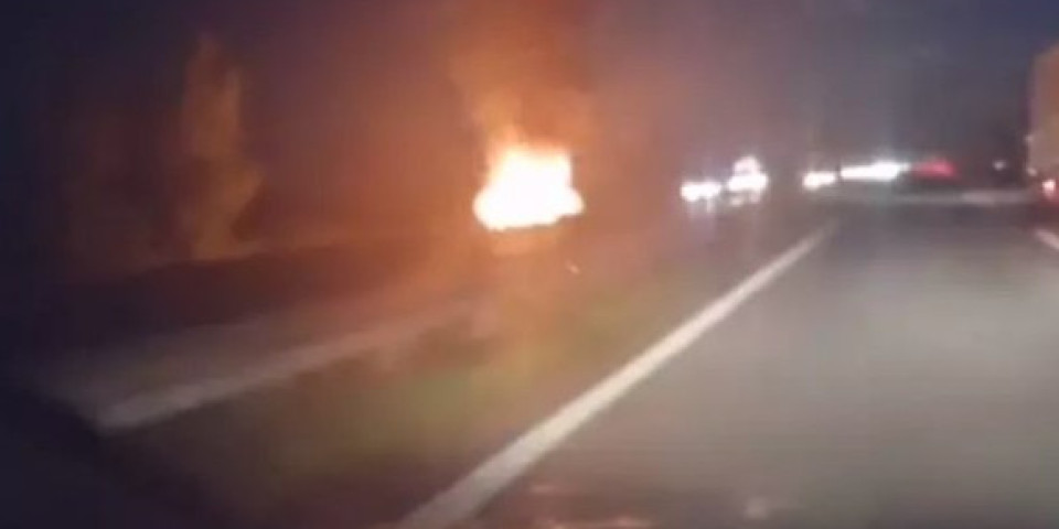 Gori automobil na auto putu Novi Sad-Beograd kod skretanja za Kovilj.
