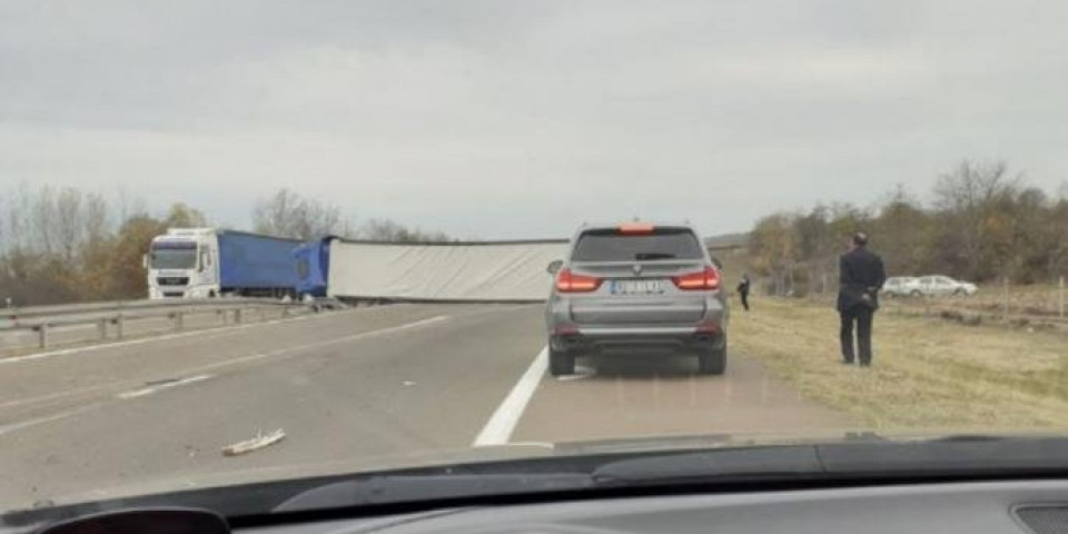 Saobraćaj na toj deonici auto-puta u smeru ka Beogradu obustavljen je pošto su kabina kamiona i prikolica potpuno preprečile put, a kabina je delimično probila i zaštitnu ogradu.