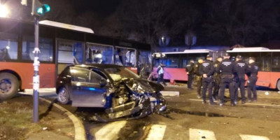 Sudarila su se dva autobusa i to 1372 sa linije 15, koji je krenuo da se uključi na liniju, i autobus privatnog prevoznika. Do nesreće je došlo kada se iz Tršćanske ulice pojavilo putničko vozilo koje je, kako stoje stvari kršeći pravila i vozeći neprilagođenom brzinom udarilo u autobus privatnog prevoznika koji je potom udario u gradski autobus. Vozač automobila je, prema informacijama koje sam dobio na licu mesta, bežao od policije.
