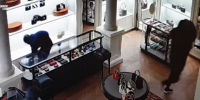 Na snimku koji su objavili italijanski mediji vidi se kako dvojica muškaraca sa još dvojicom pomoćnika automobilom razbijaju izlog prodavnice, a zatim sa velikim torbama upadaju unutra i uzimaju sve što im može pasti pod ruku - torbice, nakit, parfeme i druge brendirane i skupocene predmete.