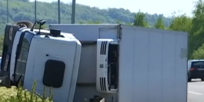 Kamion je probio zaštitnu ogradu, pa je kabina ostala u jednoj, a prikolica u drugoj saobraćajnoj traci.