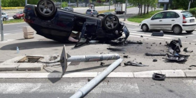 Od siline udarca, "porše" je završio na krovu. Hitna pomoć je brzo i efikasno reagovala i vozač "poršea" prevezen je u Urgentni centar.