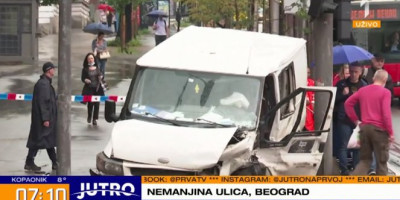 Oko šest časova ispred Vlade Srbije sudarili su se kombi i putničko vozilo.