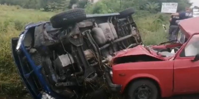 Od siline udarca kombi se prevrnuo na bok i završio u jarku kraj puta.