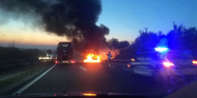 Kako se vidi na snimku, vozilo je u plamenu, a gust dim se nadvio nad ovim delom puta!
