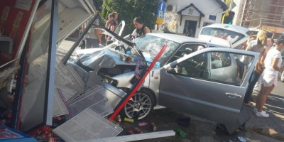 Prizor na licu mesta delovao je zastrašujuće. Prednji deo automobila sabijen, a rashladni uređaji tik do ulaza u trafiku potpuno polomljeni, piće i staklo rasuti na sve strane.