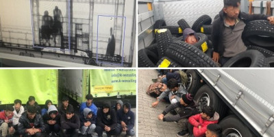 Petorica „slepih putnika“ pronađena su i u tovaru spoljnih auto guma, kojima je bio natovaren kamion čačanskih registarskih oznaka na putu ka Švedskoj.
