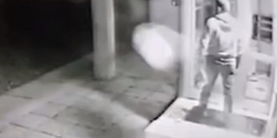Na snimku se ne vidi napadač, a muškarac odmah pada na zemlju i na taj način izbegava kišu metaka. Vrata zgrade se u sledećem momentu otvaraju nakon čega uspeva da upuzi unutra i sačuva život.