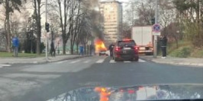 Vatra je kuljala iz vozila nasred ulice, ali nije bilo poznato kako je došlo do požara.