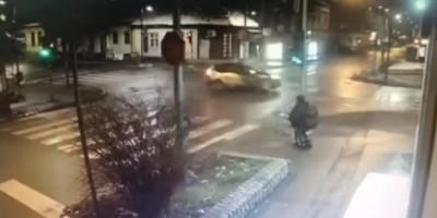 Na snimku se vidi majka sa detetom koja je čekala da pređe ulicu, a onda su se automobili zakucali jedan u drugi.
