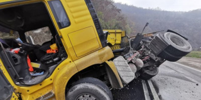 Tokom istovara zemlje došlo je do prevartanja teško natovarenog kamiona marke MAN, kojim je upravljao Života V. (64).