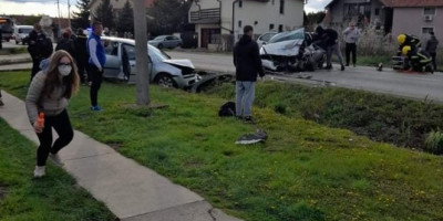 Od siline udara, jedan automobil završio je u kanalu pored puta, a oba vozila su smrskana.
